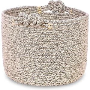 ソースファクトリーは、綿ロープ手織り結び目収納バスケット収納バスケットリビングルームデスクトップおもちゃのクロスボーダー供給に特化しています。