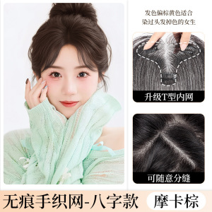 シームレスな手織りメッシュ【八文字風・モカブラウン】で髪の継ぎ目もカバー可能