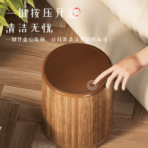 模造木目調ゴミ箱、家庭用リビングルーム、見栄えの良い収納バケツ、キッチン、蓋付き大容量、車輪付き、取り外し可能な紙バスケット