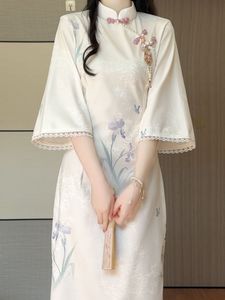 抹茶もちもち 2025 新しいハイエンド改良チャイナドレス新しい中国風の花逆大袖若い女の子のロングスカート