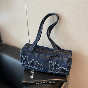 韓国マティンキムレトロレターウォッシュデニムバッグ大容量トートバッグ女子大生ニッチ脇の下