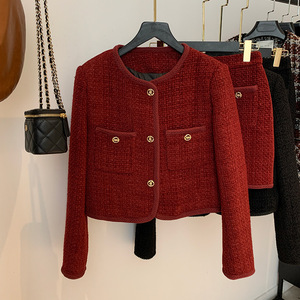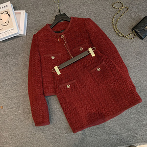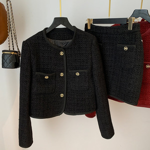 棉香约高级感小香风时尚套装女秋冬新款气质上衣+字裙两件套