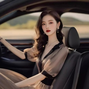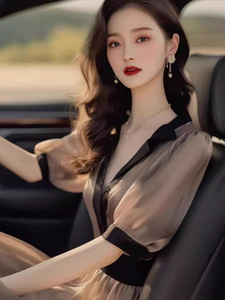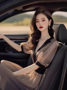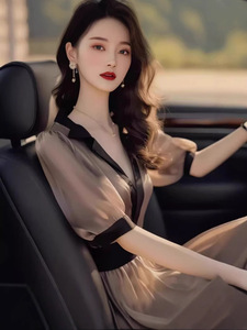 フランスの高級スタイル、ユニークな気質、茶色のドレス、夏のニッチなデザイン、控えめで雰囲気のある美しいドレス
