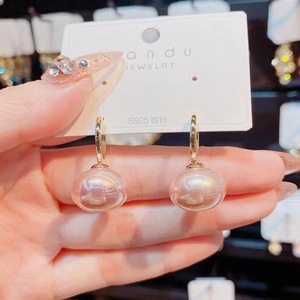 銅イヤリング、扁平パールイヤリング、新しいトレンディなイヤリング、女性のライトラグジュアリーニッチ、エレガントな気質、シンプルでファッショナブルなイヤリング