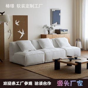 フレンチレトロフローティングアイランドモジュールソファわびさびスタイル小さなリビングルーム寝室取り外し可能で洗える綿と麻の豆腐ブロックソファ