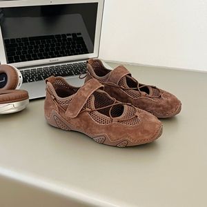 中空通気性スポーツサンダル女性のための 2025 夏の新しい厚底バレエトレーニングシューズメッシュスポーツメリージェーンシューズ