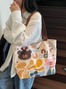 韓国スタイルカジュアル塗装漫画布トートバッグ 2025 新しいかわいい女の子多用途テクスチャショルダーバッグ