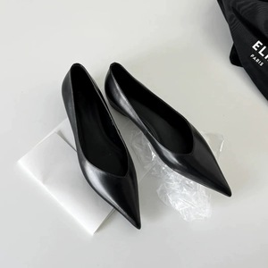 女性用フレンチミニマリストスタイルフラットシューズのシープスキンバージョン、通勤用のエレガントなポインテッドトゥスリッポンシューズ、本革レディースシューズ