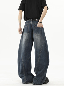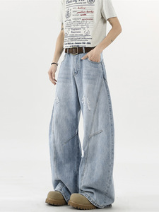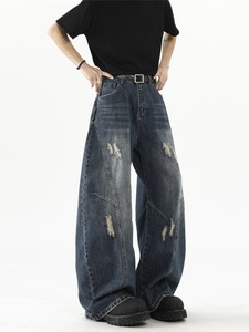 アメリカンバギーシミタージーンズメンズ夏トレンディブランドデザインリップドパンツハイストリートウォッシュフロアレングスパンツ