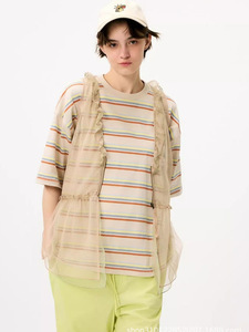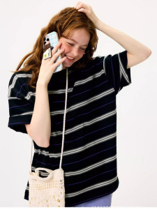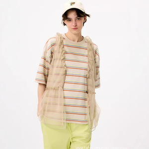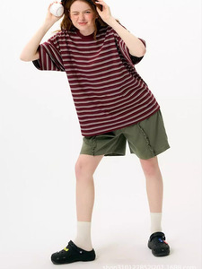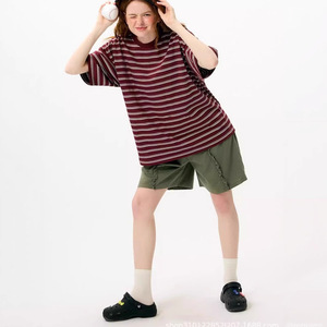2025 夏の新日本 NK ミッドレングスコントラストストライプルーズカジュアルユニセックス半袖 Tシャツトップ女性用