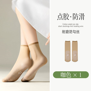 女性用ショートストッキング、春夏極薄クリスタルシルク耐摩耗性ミッドカーフソックス、肌色のストッキング、引っ掛かり防止インビジブルソックス