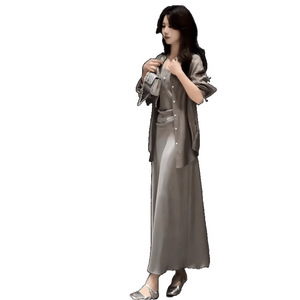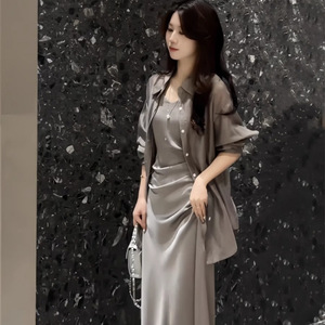 大码胖mm高级感时尚套装女夏气质吊带连衣裙+防晒衬衫两件套200斤