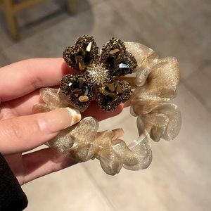 新しいスーパーフラッシュラインストーン四つ葉のクローバー大腸ヘアバンドヘアロープ女性のハイエンドヘアゴムバンドヘッドバンドヘアアクセサリー