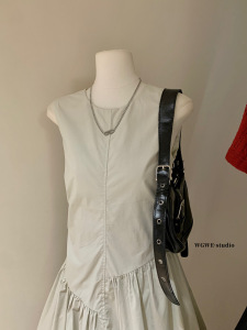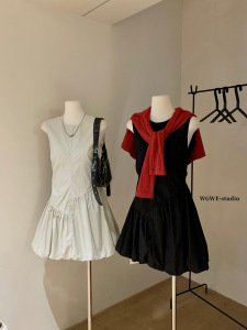 WGWE 夏新作フラワーバドスカート韓国風ラウンドネックノースリーブウエストレース痩身ドレス W5883
