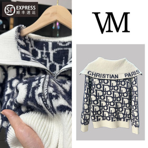 フランス社交界の女性の香りの長袖ニットカーディガンセータージャケット女性の秋と冬の新しいルーズネイビーカラートップ