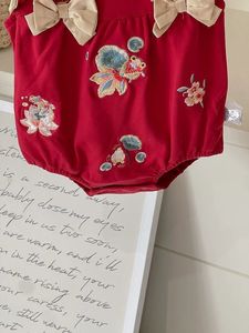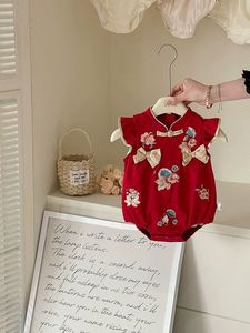夏の新スタイルの幼児服、中国風の女の赤ちゃんハイハイ服、満月と百日用の薄いベビー服