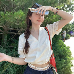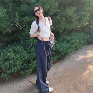im to Jennie レースストラップジャカード V ネックシャツトップウエストステッチレースカジュアルパンツスーツ女性用