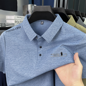 夏のメンズ Tシャツビジネスライト高級ラペルトップ 2025 新しいシンプルな多用途プリント半袖薄手の Tシャツ男性