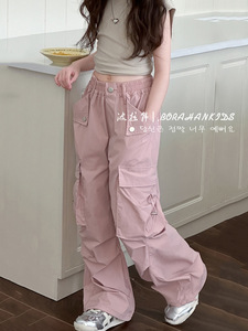 女童洋气工装裤春夏儿童休闲裤2025新款中大童宽松直筒裤男童裤子