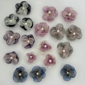 花アクセサリーオーガンザ新パールフラワー diy ヘアピン頭飾り携帯電話ケース衣類装飾アクセサリー材料