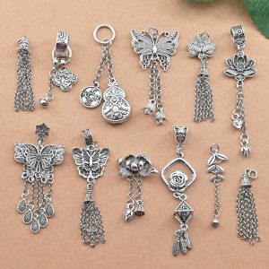 チベットシルバーリボンタッセルペンダントアクセサリー diy クリスタルブレスレットネックレスひょうたんランタンアクセサリー