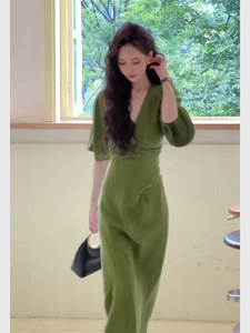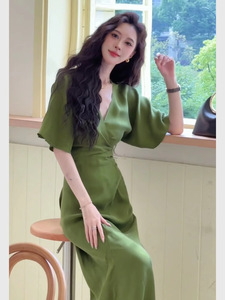 在庫あり、見事なフレンチグリーンドレス2025新作、今年人気のユニークで美しいスカート