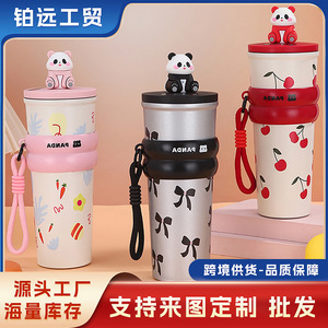 見栄えの良いステンレス製魔法瓶カップ、大容量車載用かわいいプリントコーヒーカップ、冷たい飲み物を保つダブルドリンクアイスカップ