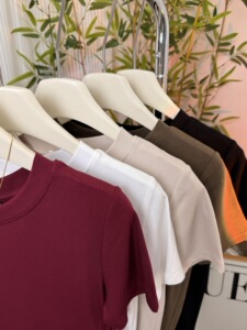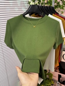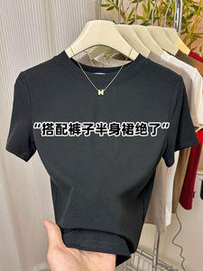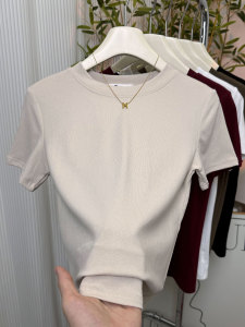 フラワーグレーラウンドネック半袖スリムフィットシャツ女性の夏の新しい気質ハイエンドストレッチトップTシャツトレンディ