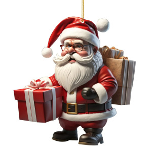 アクリルフラットクリスマス漫画サンタクロースクリスマスツリーペンダントクリスマス車のバックミラーペンダント