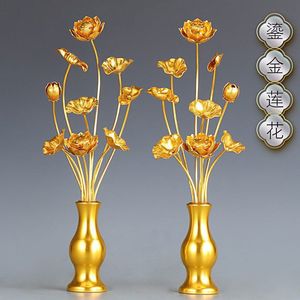 仏前花、金箔蓮、仏殿装飾、リビングルーム、金蓮、仏花、観音仏殿花、アルミ手作り