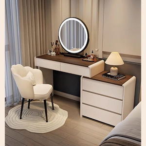2025 新しい寝室のドレッシングテーブルモダンなシンプルなクリームスタイルのベースボードライト高級ハイエンドテーブル全無垢材ドレッシングテーブル