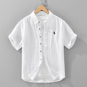 1510 夏フレッシュカジュアルリネンメンズ半袖シャツスクエアカラー刺繍ルーズ大きいサイズ無地リネントップ