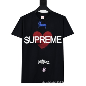 ヘビーウェイトクロスボーダー アメリカンファッション Supreme レタープリント Tシャツ BOX ラウンドネック 半袖 メンズ レディース ゆったり カジュアル Tシャツ 男女兼用