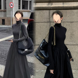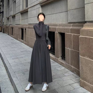 高级感赫本洋气连衣裙女2025春装新款韩版显瘦过膝打底内搭长裙子