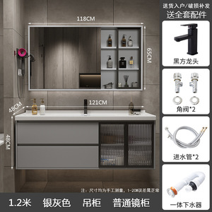 シルバーグレーガラスドアスマートミラーキャビネット+ウォールキャビネット+フラット洗面器-1.2m [ハードウェアアクセサリーのフルセットが無料。]