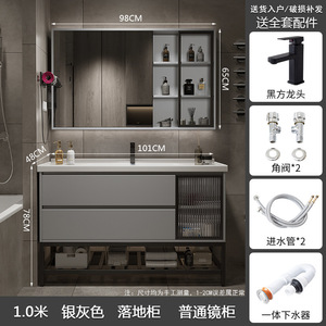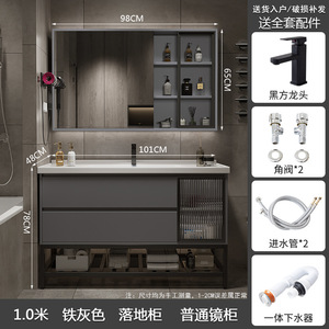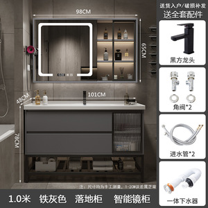 アイアングレーガラスドアスマートミラーキャビネット+フロアキャビネット+フラット洗面器-1m [ハードウェアアクセサリーのフルセットが付属しています。]