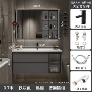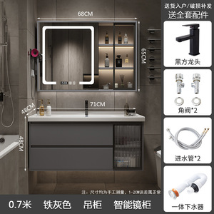 アイアングレーガラスドアスマートミラーキャビネット+ウォールキャビネット+フラット洗面器-70cm [ハードウェアアクセサリーのフルセットが付属しています。]