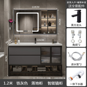 アイアングレーガラスドアスマートミラーキャビネット+フロアキャビネット+フラット洗面器-1.2m [ハードウェアアクセサリーのフルセットが付属しています。]
