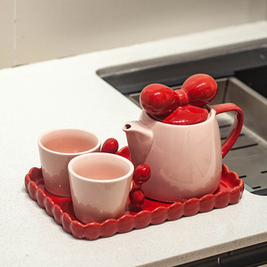 BSL レッドリボン ピンクウォーターセットA(ポット1個、カップ2個、トレイ小1個)