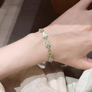 ゴールデンエナメル宝花ひょうたんブレスレット中国風新中国風の祝福ブレスレットDouyinライブ新しい白銅女性