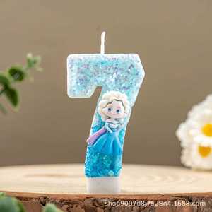 漫画クリエイティブ氷と雪のプリンセスデジタルキャンドルインターネット有名人の電子商取引ホットセールアイテム1歳の誕生日ケーキパーティーの装飾