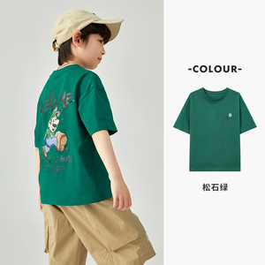 男の子用夏カジュアルTシャツ、子供用半袖漫画プリント、中型および大型子供用涼しく肌に優しいトップス、トレンディな子供用夏服