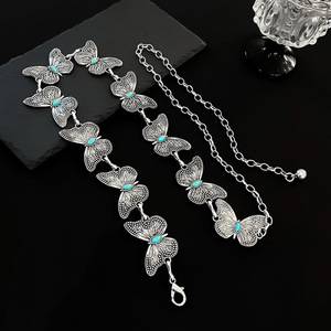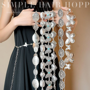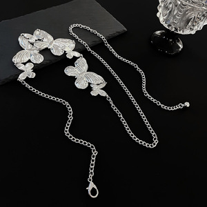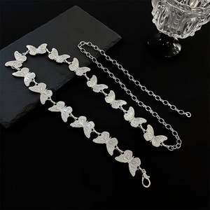 シルバーメタルウエストチェーンハイエンドスカートレトロボヘミアンバタフライチェーンy2kベルトレディースアクセサリー