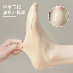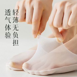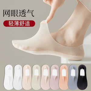 女性用夏用薄型ボートソックス、女性用浅い口の見えないソックス、シリコン滑り止め、脱落防止、吸汗性、通気性のある女性用アイスシルクソックス
