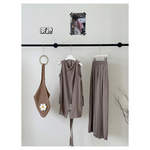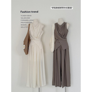 セナ呼吸麻ベストストラップトップ女性の弾性ウエストルーズカジュアルパンツスーツ 2025 夏の新スタイル
