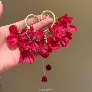 玫瑰之恋~复古红色花朵耳挂无耳洞耳环度假风氛围感海边拍照耳饰
