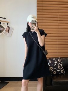 JI シンプルな気質カジュアル多用途スリム小フライングスリーブ Tシャツドレスラウンドネック半袖 Tシャツドレス女性の夏 2025