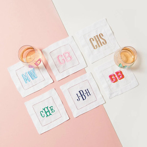 etsy Amazon ホットセールパーソナライズされた刺繍単一文字カクテルナプキンレストランレストランホワイトリネンナプキン