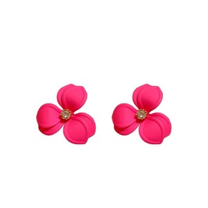 法式高级感温柔气质滴釉喷漆花朵耳环小众设计双层百合花甜美耳钉