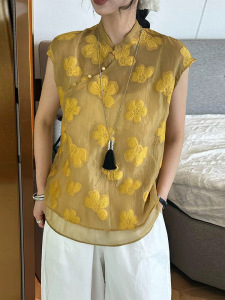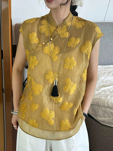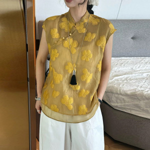 新しい中国風のボタン刺繍スタンドカラーシャツ女性のヨーロッパステーション 2025 夏の新しいヨーロッパの女性のファッショナブルなトップストレンド